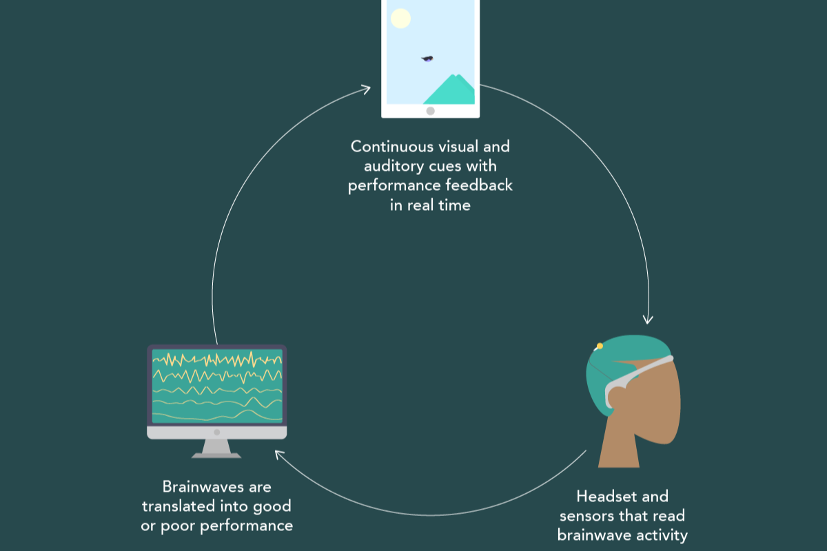 Using EEG technology, we measure brain activity in real time and provide feedback through visuals and sounds. The brain uses this information to practice healthier patterns, much like exercising a muscle.
