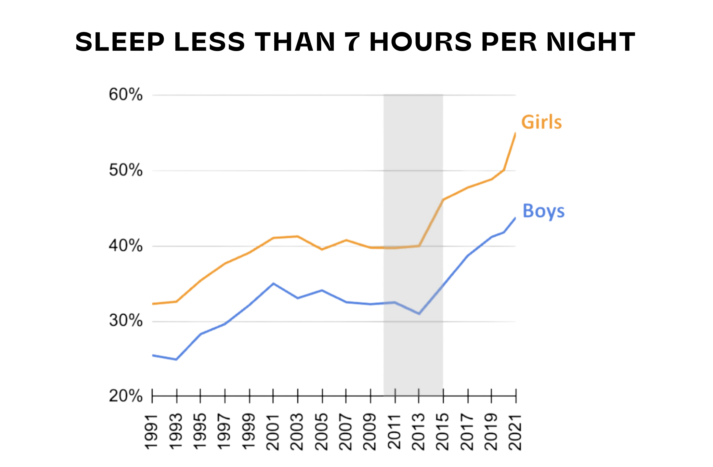 Girls are disproportionately affected by social comparison pressures and online interactions, with 60% reporting feelings of sadness or hopelessness compared to 40% of boys (2021 Youth Risk Behavior Survey). This marks the highest level of emotional distress recorded in decades.