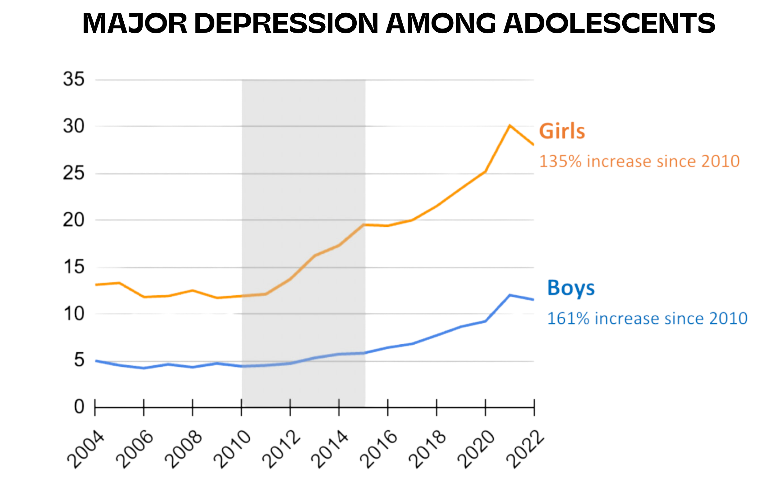 Since 2010, adolescent girls have seen a 135% increase in mental health struggles, including depression, anxiety, and self-harm behaviors.
