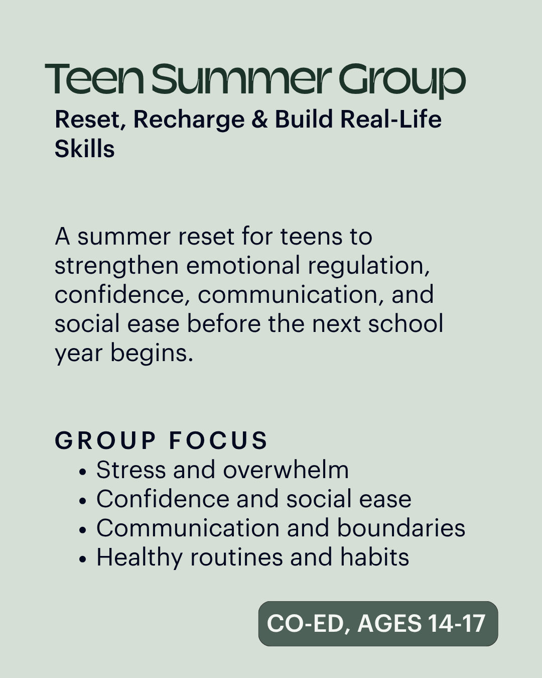 Group Support Designed for Teens & Young Adults